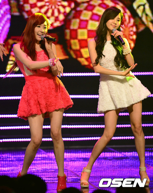 [OSEN = 백승철 기자] 24일 오후 서울 마포구 상암동 CJ E&M에서 진행된 Mnet 엠카운트다운(이하 엠카) 생방송에서 태티서가 화려한 공연을 펼치고 있다.