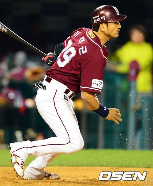 24일 오후 서울 잠실구장에서 열린 '2012 팔도 프로야구' LG 트윈스와 넥센 히어로즈와의 경기에서 5회초 1사 주자 2,3루 넥센 이택근이 유격수 앞 땅볼로 1타점을 올리고 있다.