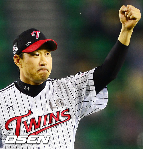 경기를 마치고 LG 마무리 봉중근이 주먹을 불끈 쥐고 있다. / rumi@osen.co.kr