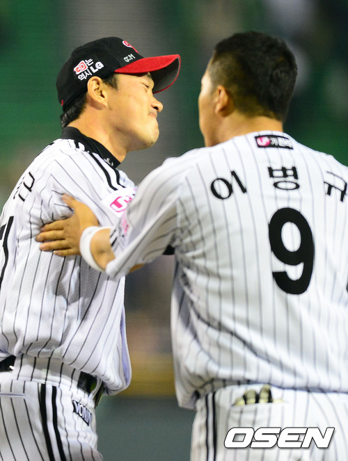 경기를 마치고 LG 봉중근과 이병규가 기쁨을 나누고 있다./ rumi@osen.co.kr