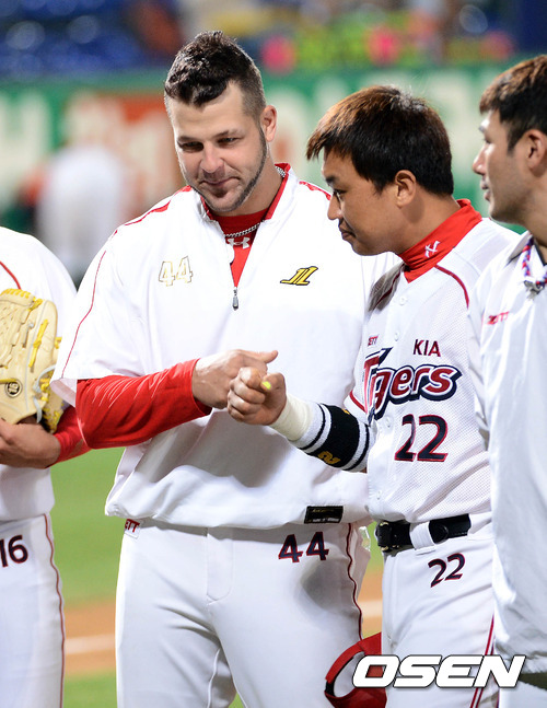 경기 종료 후 KIA 앤서니가 동료들과 승리의 기쁨을 나누고 있다. / sunday@osen.co.kr