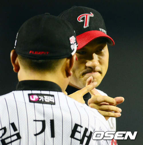 경기를 마친 후 LG 김기태 감독과 봉중근이 하이파이브를 하고 있다. / rumi@osen.co.kr