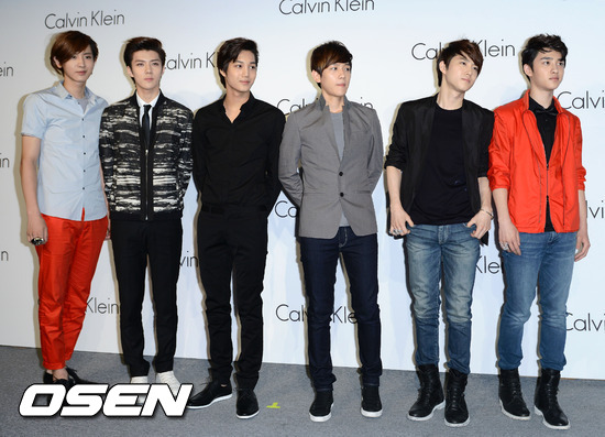 23일 오후 서울역에서 열린 '캘빈 클라인 멀티 브랜드 이벤트' 에서 그룹 EXO-K가 포토타임을 갖고 있다.