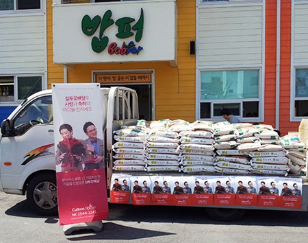 방송인이자 사업가인 컬투가 5월 가정의 달을 맞아 결식자 대상 무료급식소 '밥퍼'에 농협쌀 2톤은 기부했다.