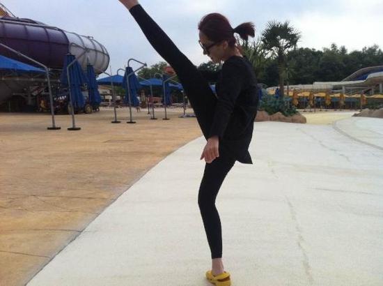 사진을 본 네티즌은 "다리 정말 잘 올라간다", "몸이 굉장히 유연하네", "곧 발차기 하는 역할을 맡으시나?" 등의 반응을 보였다.