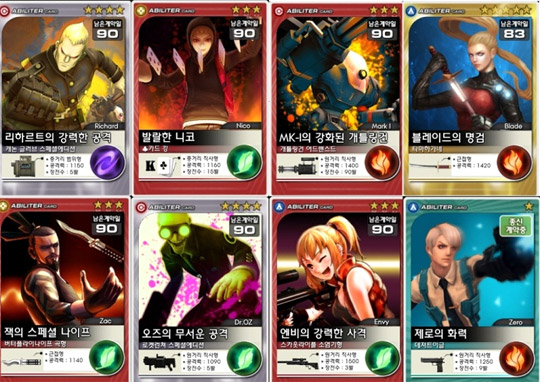 ▶ 각각의 카드에 능력자X 캐릭터와 능력자 고유의 무기가 표시되어 있다.