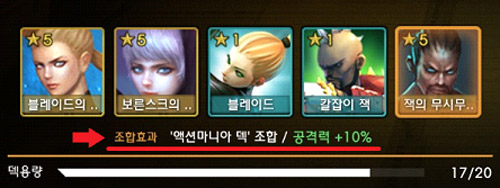 ▶ 특정 캐릭터 조합을 통해 다양한 “조합효과” 버프를 얻을 수도 있다.