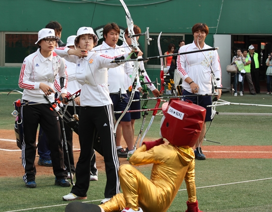 올림픽 양궁 경기가 열릴 로즈 크리켓 경기장과 유사한 환경인 야구장에서 훈련을 통해 관중의 응원과 함성 가운데 고도의 집중력을 기른다는 계획이다. 한국은 이날 남녀 대표팀 단체전 성대결을 통해 야구팬들에게 즐거움을 선사할 예정이다.
