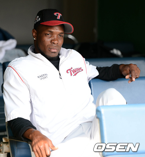 25일 오후 광주 무등야구장에서 열린 '2012 팔도 프로야구' KIA 타이거즈와 LG 트윈스의 경기에 앞서 LG 리즈가 더그아웃에서 그라운드를 바라보고 있다.