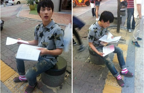 지난 23일 임시완은 트위터에 “아, 대본”이라는 탄성과 함께 핑크양말을 신고 있는 2장의 사진을 공개했다.