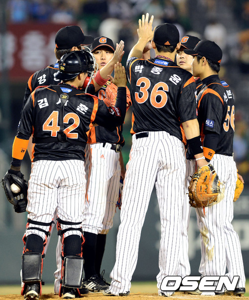 경기 종료후 선수들이 마운드에서 하이파이브를 하고 있다. / youngrae@osen.co.kr