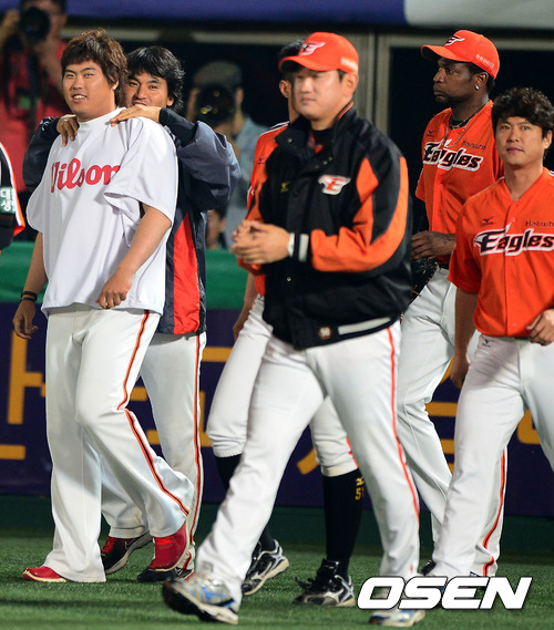 한화는 25일 목동구장에서 열린 '2012 팔도 프로야구' 넥센 히어로즈전에서 선발 류현진의 7이닝 2실점 호투와 연장 10회 백승룡의 결승 적시타에 힘입어 5-4 재역전승을 거뒀다.