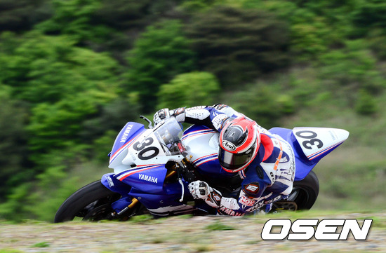 26일 일본 오이타현 오토폴리스 인터내셔널 서킷에서 열린 'AUTOPOLIS SUPER 2&4 RACE 2012' 모터 바이크 ST600 4라운드 레이스1 경기에서 우승을 차지한 데차 크라이사트(야마하 태국 레이싱팀,태국)가 굉음을 내며 서킷을 질주하고 있다.
