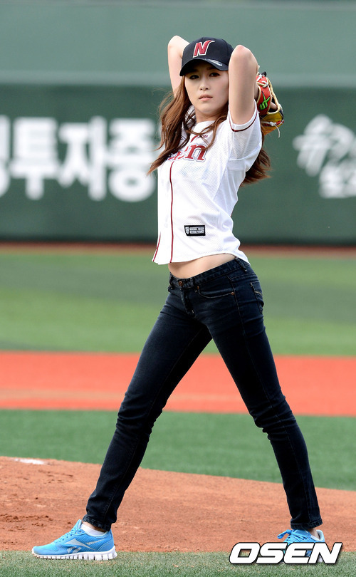 26일 서울 목동구장에서 열린 '2012 팔도 프로야구' 넥센 히어로즈와 한화 이글스의 경기에 U1 미디어 이은비 아나운서가 멋진 폼으로 시구를 하고 있다.