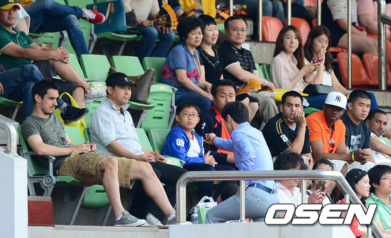 26일 오후 성남 탄천종합운동장에서 열린 '현대오일뱅크 K리그 2012' 성남 일화와 대구 FC의 경기, 전반 성남 윤빛가람이 경고 누적으로 퇴장당하자 신태용 감독이 불만을 나타내며 관중석으로 올라가고 있다.