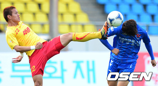 26일 오후 성남 탄천종합운동장에서 열린 '현대오일뱅크 K리그 2012' 성남 일화와 대구 FC의 경기, 후반 성남 홍철과 대구 조영훈이 볼을 다투고 있다.