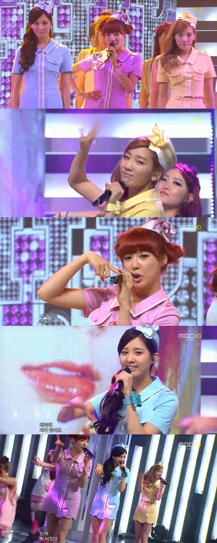 태티서는 26일 오후 방송된 MBC '쇼! 음악중심'에 출연해 '트윙클(Twinkle)'을 열창했다.