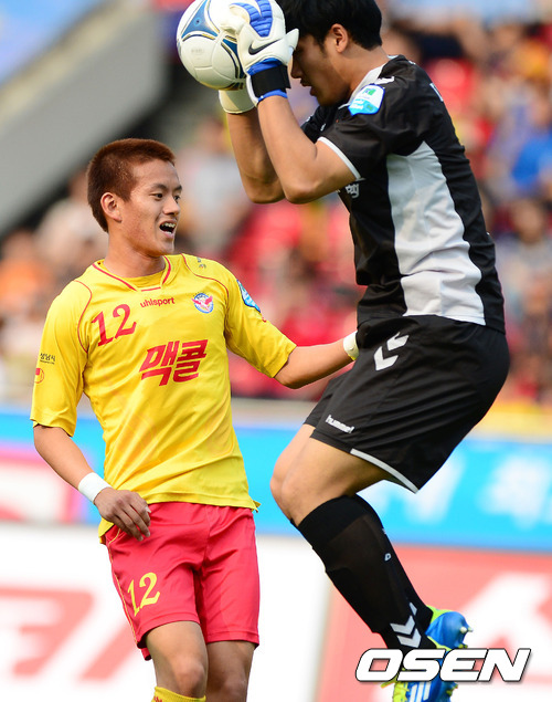 전반 성남 홍철에 앞서 대구 박준혁 골키퍼가 공중볼을 차지하고 있다./jpnews@osen.co.kr