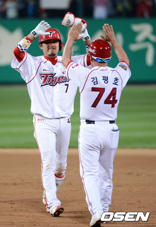 KIA도 뒷심이 있었다. 7회 2사후 이용규가 볼넷을 얻자 김선빈이 1루수 옆으로 빠지는 안타로 뒤를 받쳤다. 다음타자 김원섭이 LG 구원투수 유원상의 직구를 그대로 끌어당겨 우중간을 가르는 3루타를 날려 다시 역전에 성공했다.