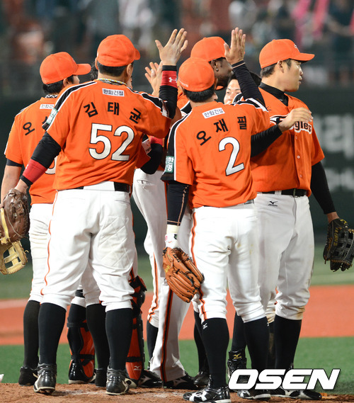 경기 종료후 한화 선수들이 기뻐하고 있다. / youngrae@osen.co.kr