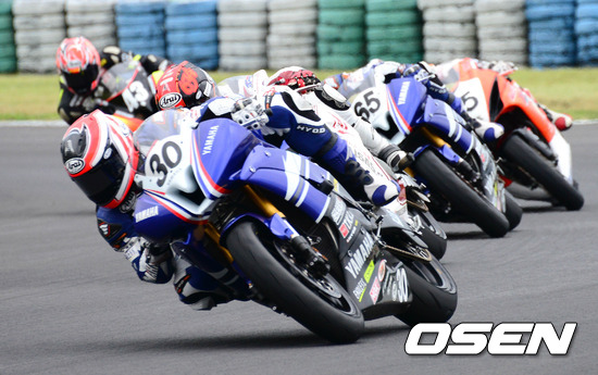 26일 일본 오이타현 오토폴리스 인터내셔널 서킷에서 열린 'AUTOPOLIS SUPER 2&4 RACE 2012' 모터 바이크 ST600 4라운드 레이스1 경기에서 우승을 차지한 데차 크라이사트(야마하 태국 레이싱팀,태국)가 굉음을 내며 선두를 달리고 있다.