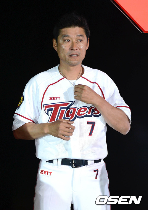 26일 오후 광주 무등야구장에서 열린 이종범 선수의 은퇴식에서 KIA 이종범이 유니폼을 벗으며 눈물을 흘리고 있다.