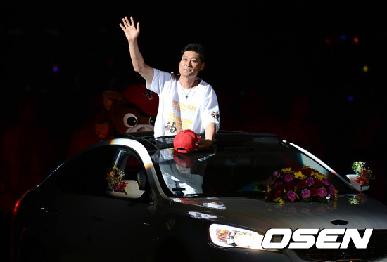 26일 오후 광주 무등야구장에서 열린 이종범 선수의 은퇴식에서 KIA 이종범이 카퍼레이드 펼치고 있다.