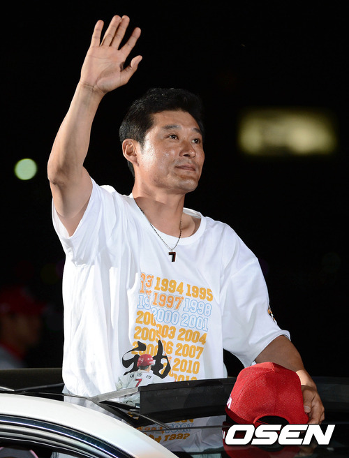 26일 오후 광주 무등야구장에서 열린 이종범 선수의 은퇴식에서 KIA 이종범이 카퍼레이드 펼치고 있다.