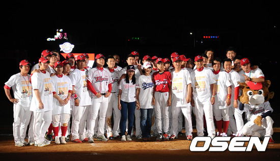 26일 오후 광주 무등야구장에서 열린 이종범 선수의 은퇴식에서 이종범이 KIA 선수들과 기념촬영을 하고 있다.