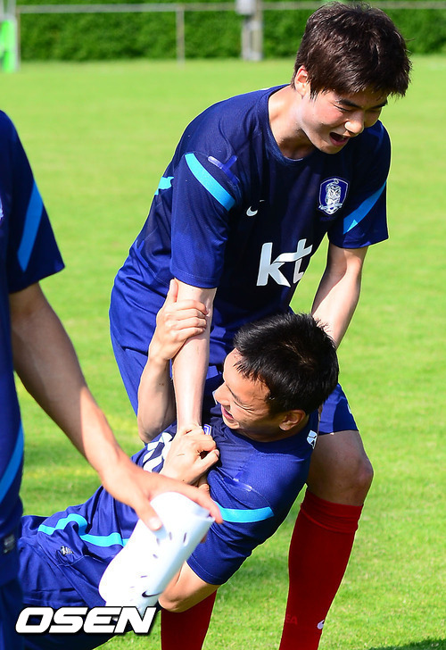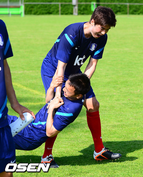 이날 훈련에는 FC서울 한솥밥을 먹었던 김치우와 기성용이 오랜만에 만나 훈련내내 장난을 치며 우정을 나눴다.