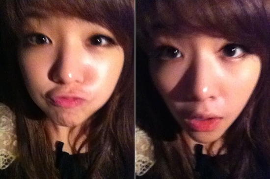 민아는 지난 26일 자신의 트위터에 "스케줄 끝나고 기분이 좋아서 사진을 찍었다"며 얼굴을 클로즈업한 사진 2장을 게재했다.