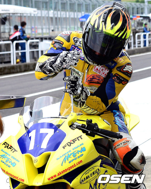27일 일본 오이타현 오토폴리스 인터내셔널 서킷에서 열린 'AUTOPOLIS SUPER 2&4 RACE 2012' 모터바이크 ST600 연습경기에서 한 선수가 직접 바이크를 손보고 있다.