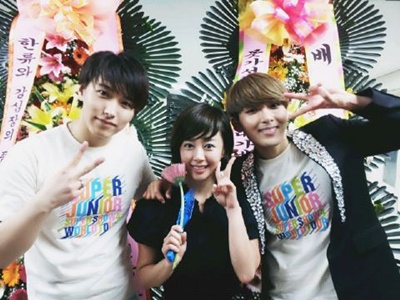 배우 신지수가 그룹 슈퍼주니어 멤버들과 함께 찍은 다정한 사진을 공개했다.