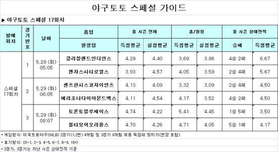 [토토 투데이]야구토토 스페셜 17회차 가이드