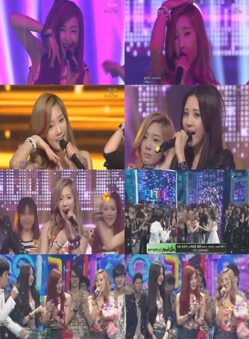 태티서는 27일 방송된 SBS '생방송 인기가요'에서 곡 '트윙클'로 1위에 해당하는 뮤티즌송을 차지했다.