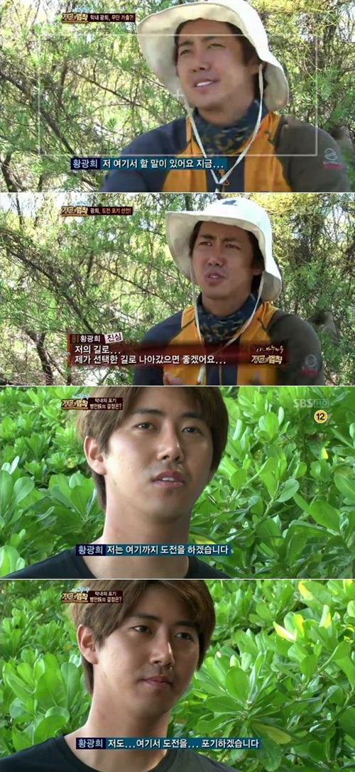 마지막으로 광희는 김병만족에게 "나는 여기까지 도전을 하고 그만 하도록 하겠다"고 선언했다.