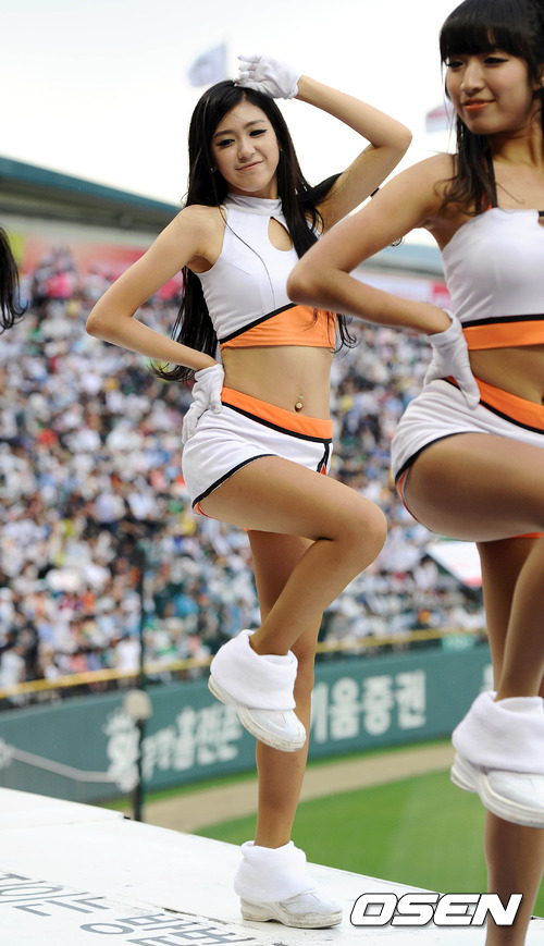27일 오후 잠실야구장에서 열린 '2012 팔도 프로야구' 두산 베어스와 롯데 자이언츠의 경기, 롯데 치어리더 김연정이 화려한 공연을 펼치고 있다.