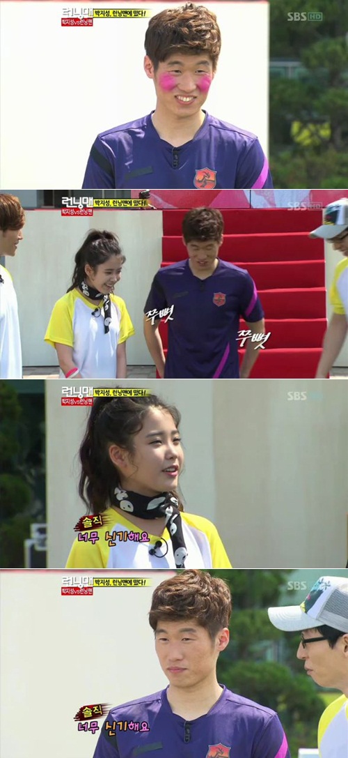 세계적인 축구 선수 영국 프리미어 리그 맨체스터 유나이티드의 박지성도 아이유 앞에서는 부끄럼을 탔다. SBS 예능프로그램 '일요일이 좋다-런닝맨'(이하 런닝맨)의 게스트로 출연한 박지성이 함께 출연한 아이유를 보고 얼굴을 붉힌 것.