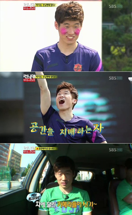 SBS 예능프로그램 '일요일이 좋다-런닝맨'(이하 런닝맨)의 게스트로 출연한 영국 프리미어리그 맨체스터 유나이티드의 박지성이 뛰어난 예능감으로 이목을 끌었다.