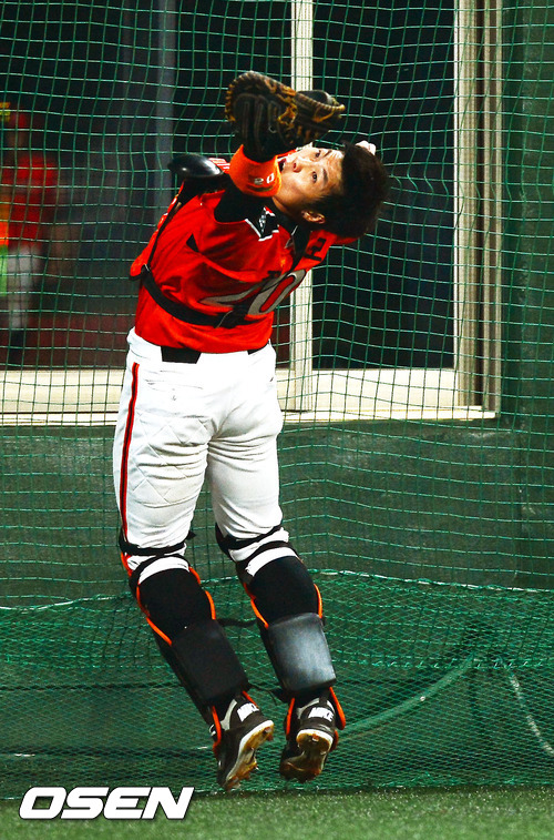 27일 오후 서울 목동구장에서 열린 넥센 히어로즈와 한화 이글스의 경기에서 8회말 1사 주자 1루 넥센 서건창의 플라이 볼을 한화 정범모가 받아내고 있다.
