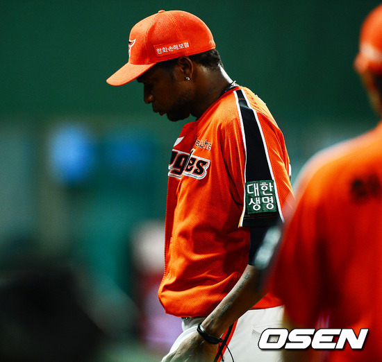 27일 오후 서울 목동구장에서 열린 넥센 히어로즈와 한화 이글스의 경기에서 8회말 2사 주자 1,2루 넥센 지석훈 타석에서 한화 바티스타가 강판 당하고 있다.