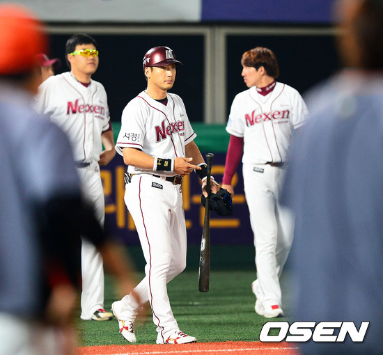 경기를 마치고 넥센 이택근이 기쁨을 나누는 한화선수들을 바라보고 있다. / rumi@osen.co.kr