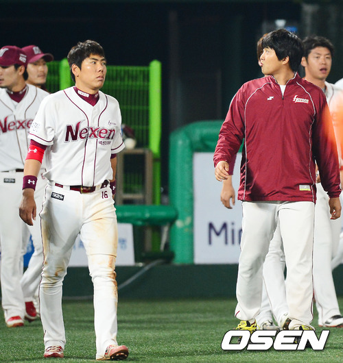 경기를 마치고 넥센 강정호와 김영민이 아쉬운 표정을 짓고 있다. / rumi@osen.co.kr