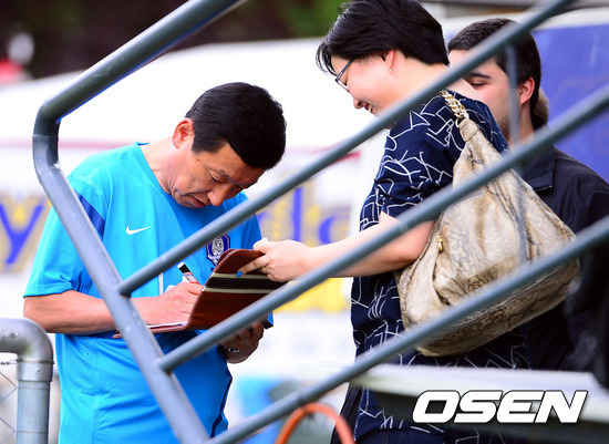 축구대표팀 최강희 감독이 현지교민에게 사인을 하고 있다 / soul1014@osen.co.kr