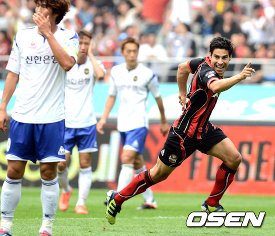 서울은 추가골도 쉽게 기록했다. 상대진영 아크 정면에서 몰리나가 연결해준 볼을 이어받은 하대성이 왼쪽 돌파하다 인천 수비 박태민이 발을 걸어 서울이 페널티킥을 얻었다. 전반 36분 데얀이 페널티킥을 성공시키며 2-0으로 앞섰다. 데얀은 페널티킥을 성공시키며 K리그 통산 100호 골을 기록했다.