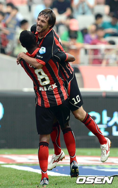 경기 후반 FC서울 데얀이 추가 골을 성공시킨뒤 아디와 기뻐하고 있다. / youngrae@osen.co.kr