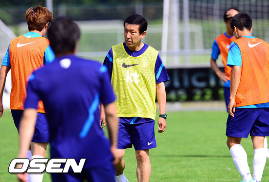 최강희 감독이 이끄는 축구 A대표팀이 28일 오후 스위스 이베르동 레 방에 위치한 스타드 뮈니시팔에서 훈련을 가졌다.