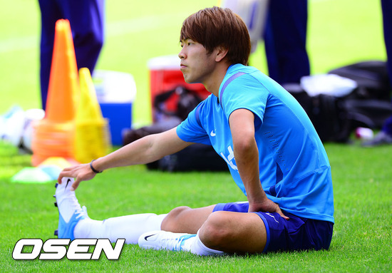 무릎통증을 호소한 김영권이 개인훈련 겸 스트레칭을 하고있다. / soul1014@osen.co.kr
