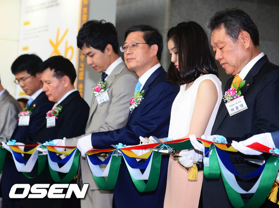 29일 삼성동 코엑스B홀에서 진행된 '2012 KB굿잡 우수기업 취업박람회'에서 김연아와 이승기가 테이프 커팅을 하고 있다.