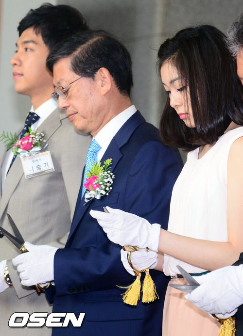 29일 삼성동 코엑스B홀에서 진행된 '2012 KB굿잡 우수기업 취업박람회'에서 김연아가 테이프커팅을 위해 가위를 만지고 있다.